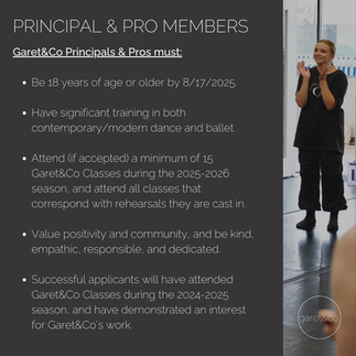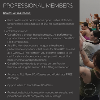 Principal Members and Professional Members are age 18+ professional dancers, and are paid for their work with Garet&Co.